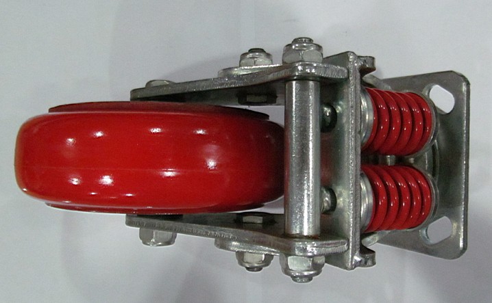 本系列利用弹簧组或减震PU胶缓冲来达到减震效果,单轮直径有130—200mm,单轮材质选