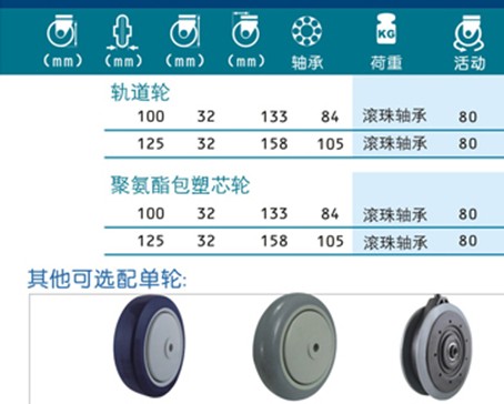 购物车轮:采用厚实支架,轮子为优质的耐磨胶为原料;中型单轮直径尺寸:75、100、125;单轮载重:50—90KG(与轮子大小有关); 本系列轮组造型美观实用,适用于商业设备、日用品厂等配套使用。